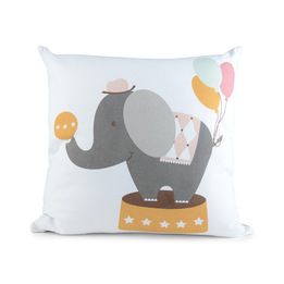Stoja är en serie från FORM Living som passar perfekt till barnrummet. På den här fina kudden så står en cirkuselefant med ballonger och skojig boll balanserades på snabeln. Kudden med elefanten har fina dova färger som passar in i alla barnrum. Den mjuka kudden blir mysig att sova på och en fin inredningsdetalj.