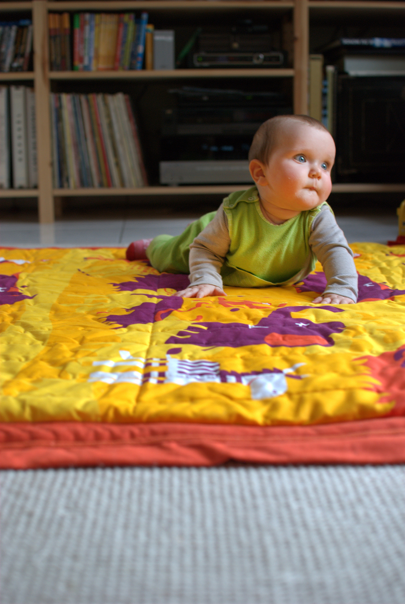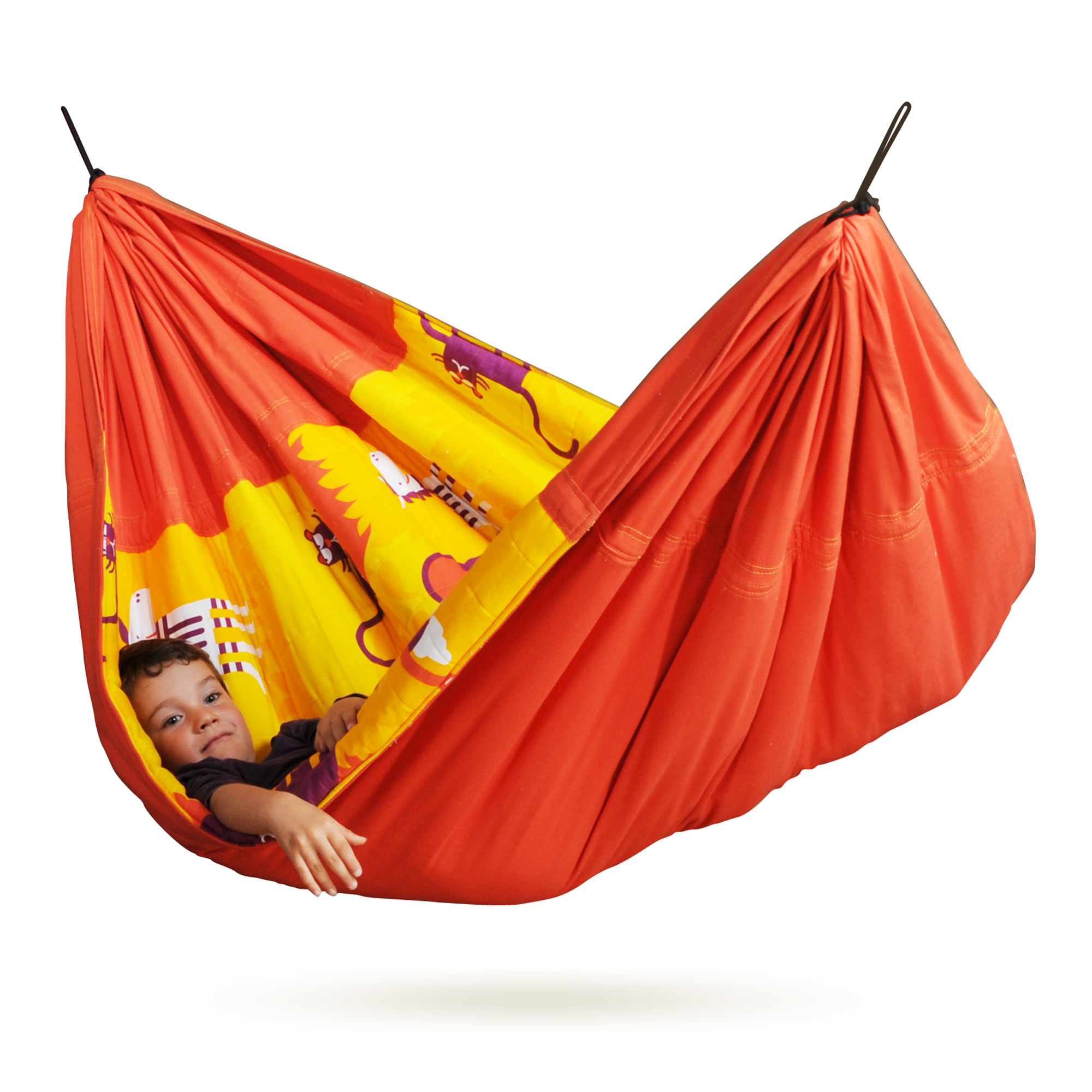 - När upphängningsanordningen tas av kan hängmattan enkelt användas som en lekmatta på golvet