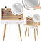Detta eleganta sminkbord i trä och vitt är ett elegant tillskott till alla sovrum. Utrustat med en ljus LED-spegel och två praktiska lådor, erbjuder detta sminkbord allt du behöver för dina dagliga skönhetsrutiner. Sminkbordet är tillverkat av kraftig MDF med ben i bok, vilket säkerställer en stabil och hållbar bas. Oavsett om du sminkar dig, stylar ditt hår eller bara behöver förvaring för småsaker, kombinerar detta sminkbord funktionalitet med stil.