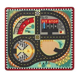 Nu kan du köra i full fart med dina racerbilar på denna lekmatta! Bjud in dina vänner och se vem som kan köra snabbast! Från 3 år. Mått: 99 x 91 cm.