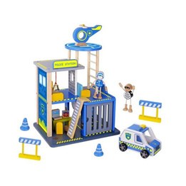 Du ser till att staden är säker från skurkar? Det är möjligt med denna träpolisstation från Tooky Toy.